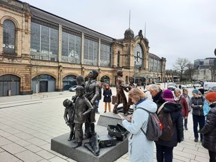 Unsere Wanderung startete am Bahnhof Dammtor mit der Besichtigung des Denkmals für jüdische Kindertransporte.