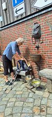 Nachdem wir Fischbeker Heide und Rosengarten hinter uns gelassen hatten, ging es gemächlicher weiter. In Langenrehm erkundeten wir zunächst das Ausstellungsgelände des Bauunternehmers Lücking. Einige nutzten bei dem schweißtreibenden Wetter hier auch die Gelegenheit, ihre Wasserflaschen wieder auffüllen zu können.