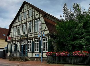 Als nächstes auch interessant, aber weniger schön und nicht ganz leise war eine Anlage zur Gasförderung. Das anschließende Wegstück entlang der Flüsse Rodau und Wiedau sowie deren Zusammernfluss konnten wir danach wieder voll und ganz genießen. Nach einem kurzen Abstecher zur „Alten Apotheke“ von Rotenburg ging es zu „Cafè Hollmann“, wo bereits eine schön gedeckte Kaffeetafel auf uns wartete.