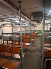 Wir lernten die Sitzräume, den Schlafraum mit 150 höchst spartanischen Drahtgestellbetten, den viel zu kleinen Küchentrakt und die Sanitäreinrichtungen kennen.
