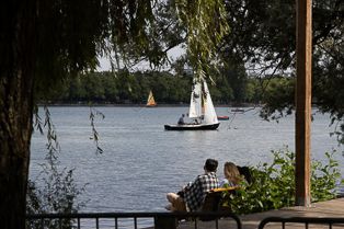 Westlich des Maschsees, das beliebte Ausflugsziel und Erholungsgebiet von Hannover, bekam die Wanderung einen beinahe maritimen Charakter. Auf dem See herrschte buntes Treiben mit Segel- und sonstigen Booten.