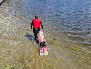 Danach konnten wir schon bald Neuland erahnen und freuten uns schon auf die geplante Einkehr. Lothar hatte die geniale Idee die Wasserskianlage und das dazu gehörige Restaurant aufzusuchen. Herrlich den Wassersportlern bei Ihren Sprüngen und waghalsigen Manövern zu zuschauen.