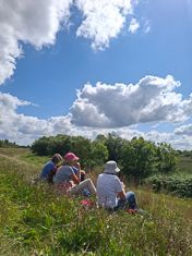 Nun ging es immer weiter im Gänsemarsch auf dem Deich entlang Richtung Neuland. Sehr erquickend war für uns alle die Pause auf dem Deich.