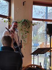 Im Café erwartet uns dann nicht nur eine Stärkung, sondern auch ein ein Live-Konzert eines Fischerhuder Liedermachers.