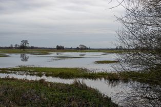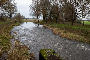 Die teilweise unter Wasser stehenden Felder weisen auf den hohen Wasserspiegel, durch die mehrfach verästelte Wümme hin.