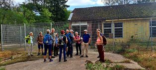War die Luft früh am Morgen auch noch recht frisch, so konnten wir doch schon bei der „Geisterklinik in der Heide“ die Jacken ausziehen. Diese ehemals im 2. Weltkrieg als Krankenhaus gebaute Anlage wurde später noch als Tuberkuloseklinik, orthopädisches Rehazentrum und Altenheim genutzt, bevor sie endgültig aufgegeben wurde. Heute steht nur noch ein einziges von einem Zaun umgebenes Gebäude, welches als Rückzugsraum für Fledermäuse und Rauchschwalben dient.